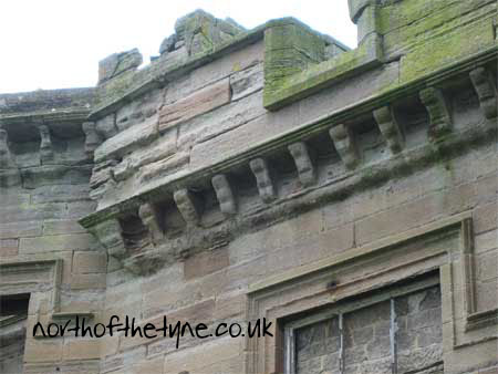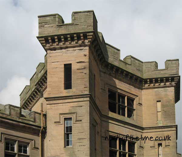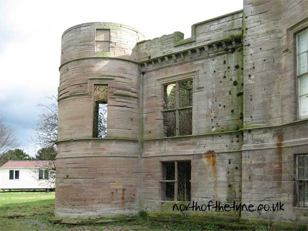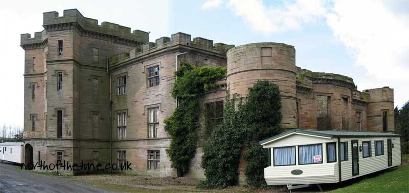 NT988398/Ruin/Access to surrounds Barmoor Castle, now the centrepiece of a caravan and chalet park, was the medieval home of the Muschampe family. It was first recorded in 1341 when a licence to crenellate was granted to Thomas de Muschamp, In 1415 there was recorded a tower here occupied by John Preston that in 1514 was capable of holding thirty horsemen. It from this Castle site in 1513 only a year earlier that the English army began their march to meet the Scots army at Flodden Field where the Scottish King James IV was killed. However by 1541 it was in ruins and in 1550 reportedly had been 'cast down by the Scots and not repaired'. A stone on a fireplace recorded a restoration in 1584 by George Muchamp, his heirs were impoverished for supporting the King in 1661 and it passed to the Carrs of Etal who also carried out work on the house in the 1680s. It was added to and altered during the 19th century being rebuilt as a country house in 1801 and the present structure was not finally completed until 1892. This castellated mansion, incorporates some towerhouse wall 1.2m-1.4m thick. It is also known as, or recorded in historical documents as; Barnmoor; Bairmoor; Byermore; Barmor; Barme |