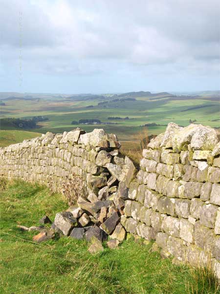 From Milecastle 40 on the hill west of Peel Bothy and easily accessible from Once brewed Visitor centre, the Wall ascends over Windshields Crags on its way through the Caw Gap and Cawfields Quarry to AESICA fort, and Milecastle 43 |
