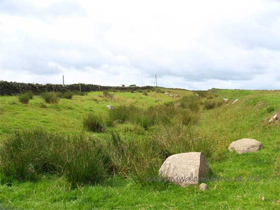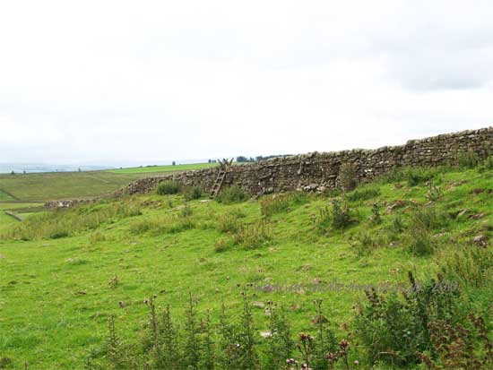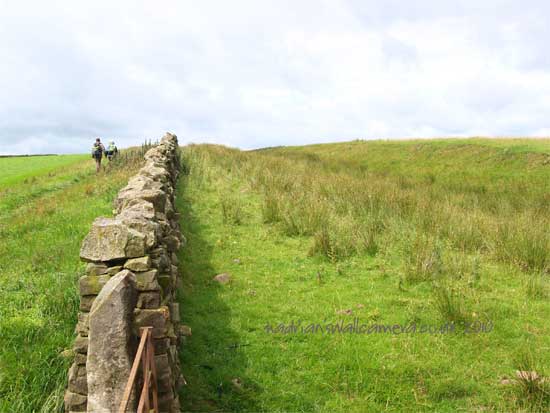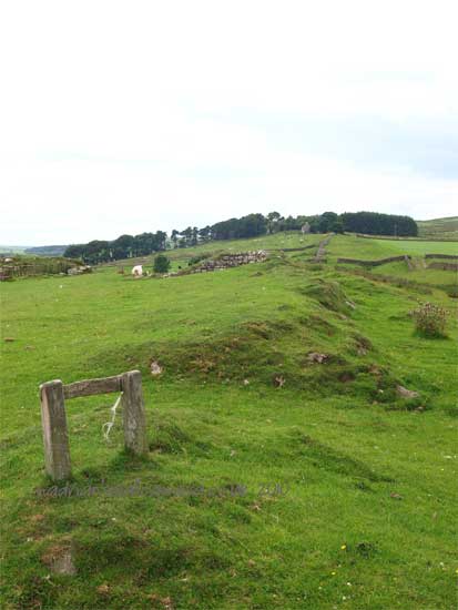 <<<<<<The Vallum comes very close to the wall here. It has been following the valley to the south of the Wall. It can be seen quite clearly in the grass.