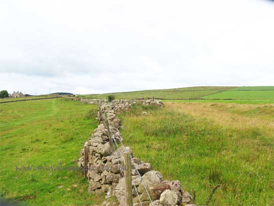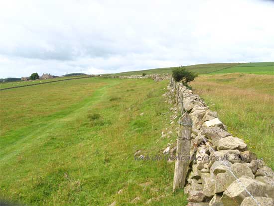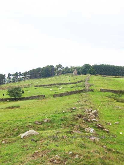 The large tree at the approach to the B & B sits on the Wall line and beyond the building the Fighting Ditch can be clearly seen. The Ditch follows the line of the Wall at the top of the hill as it curves round the site of Turret 42b and on to Milecastle 43 and the Fort of AESICA