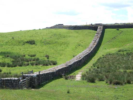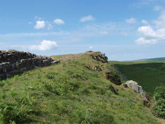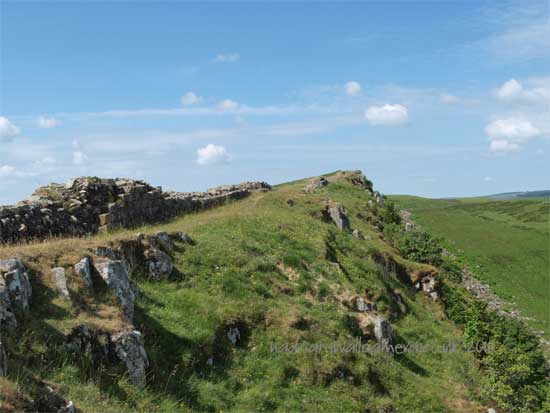 At the summit the Wall turns south down to "Busy Gap"to rise westward again on to the crests of the Whin Sill