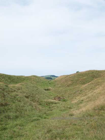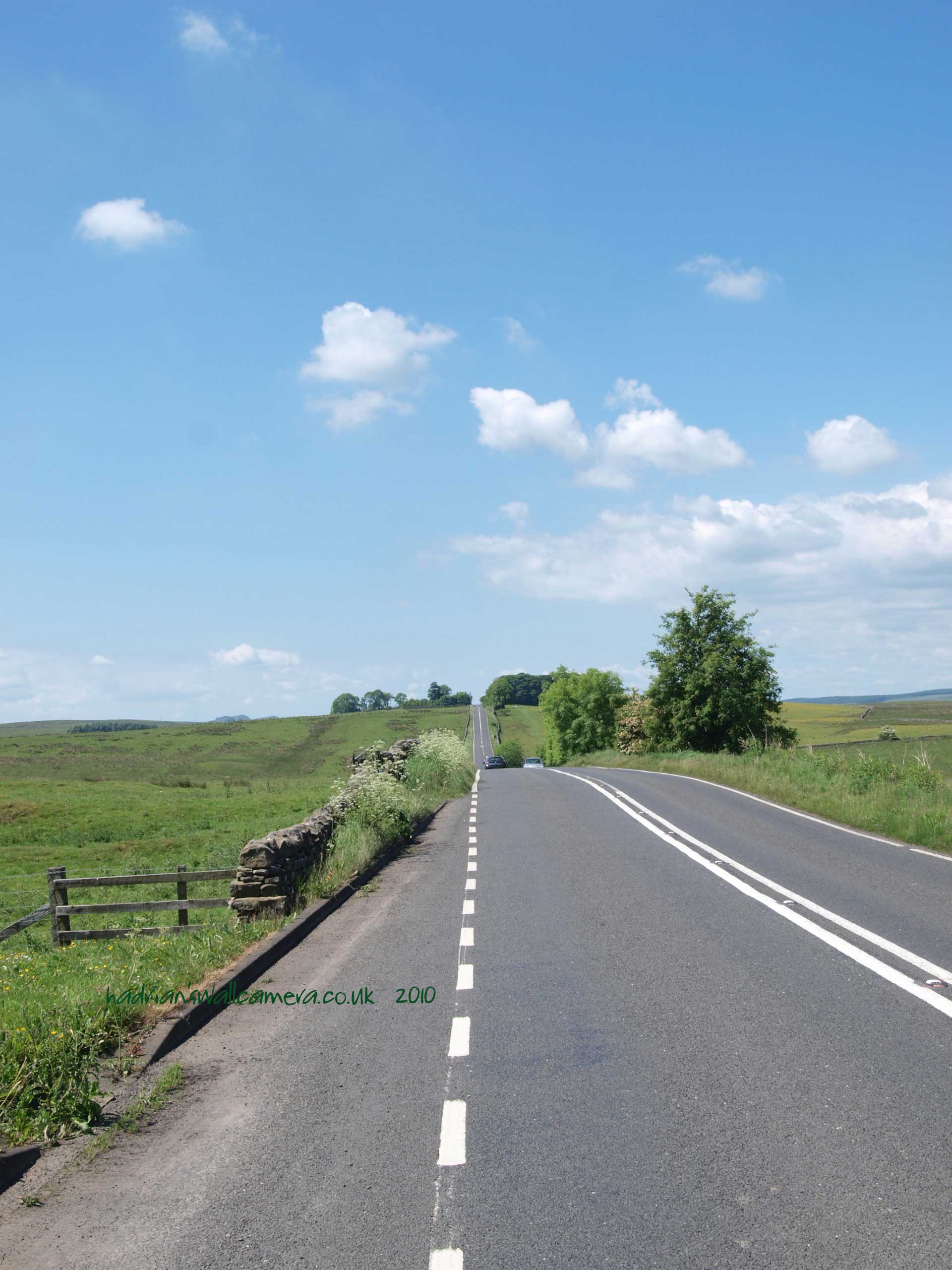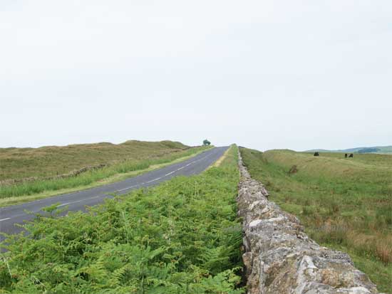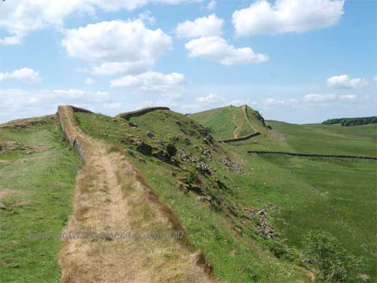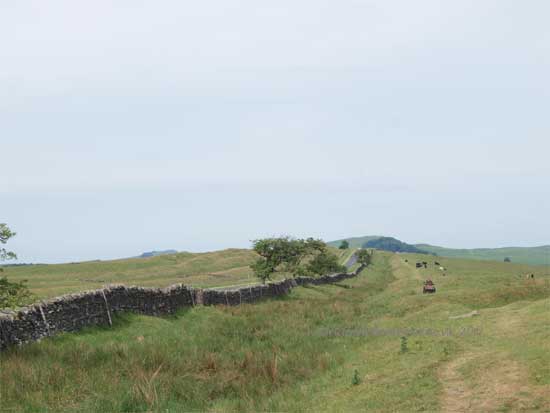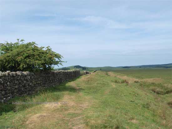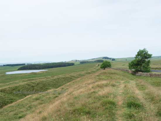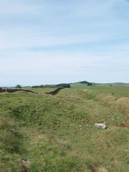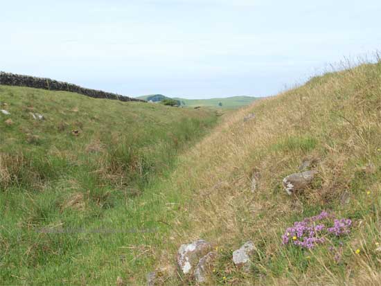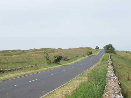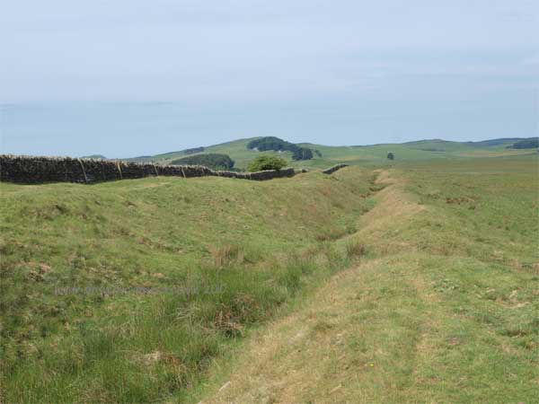 To the south of the road at this point the Vallum is spectacular and runs very close to the line of the Wall. the "Military Way" holding the same course