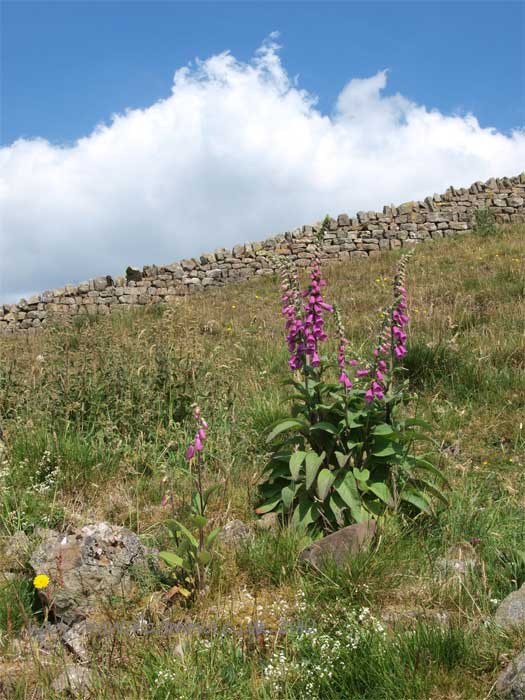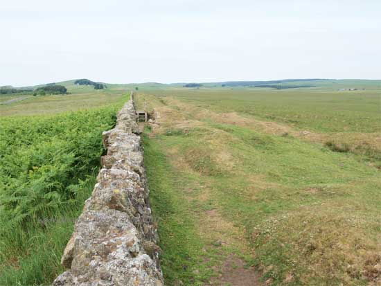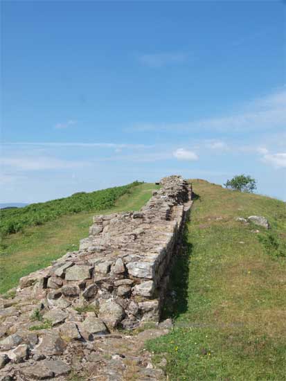 The dry stone wall sits on the base of the Roman Wall