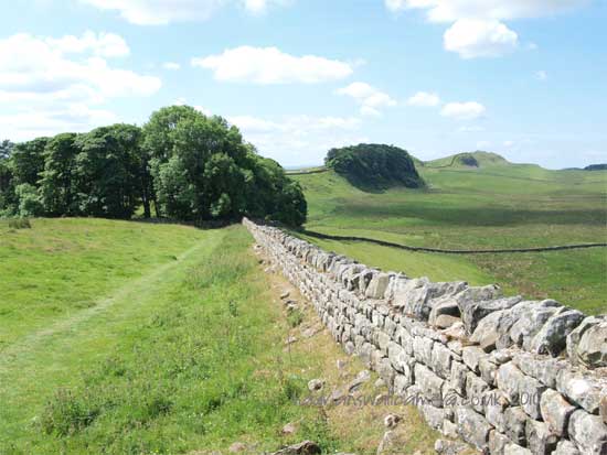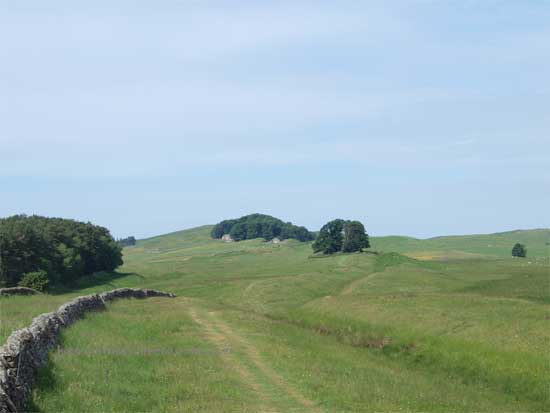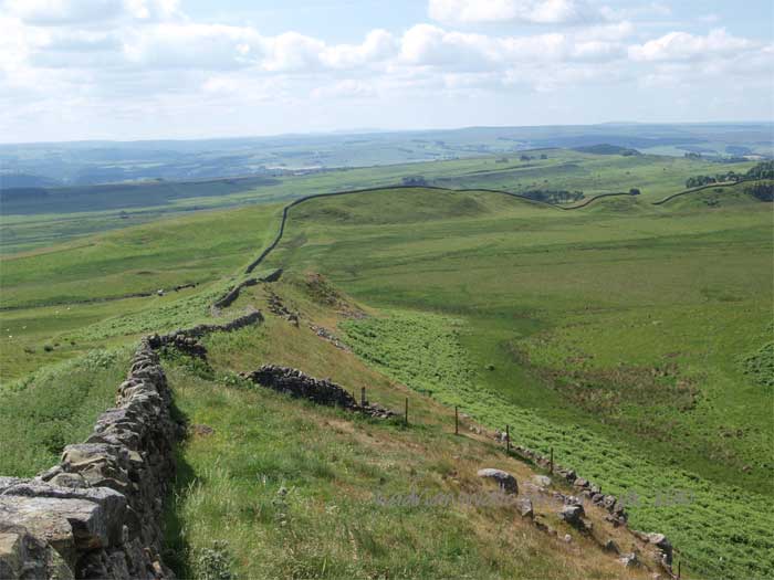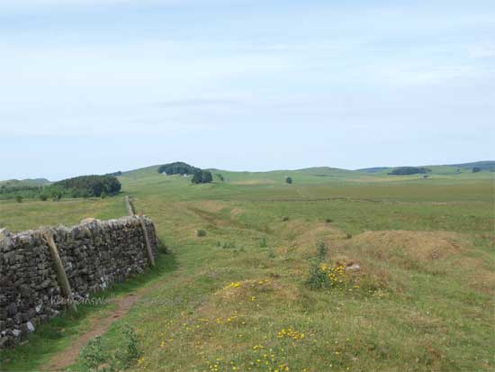 The Wall leaves for the west from Carrawburgh undulating but straight towards Sewing shields Crags.