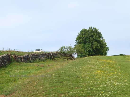 In a field over the roadside wall
