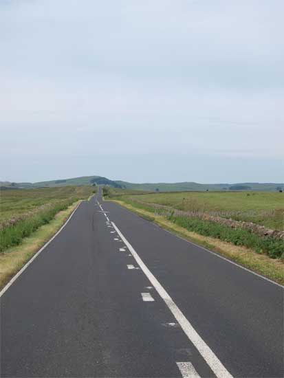The road dives south with the Wall line to heading for Sewing Shields