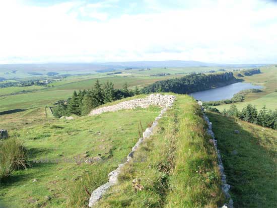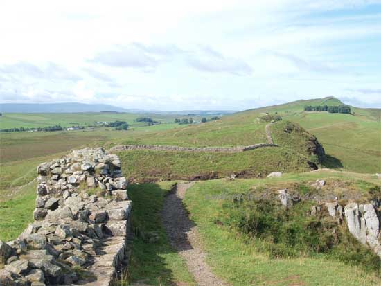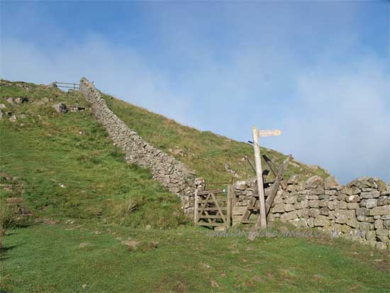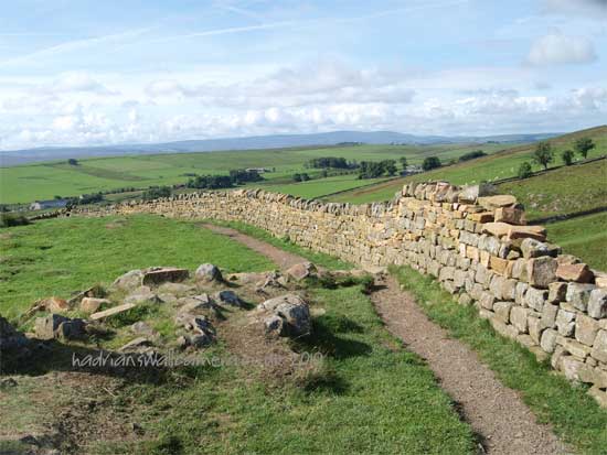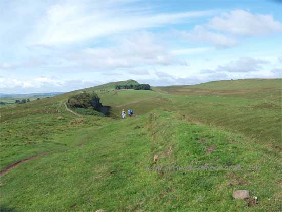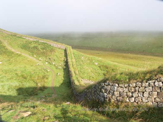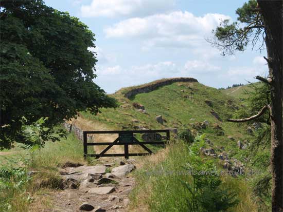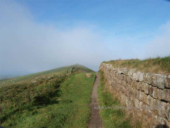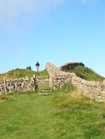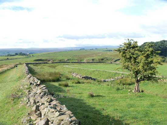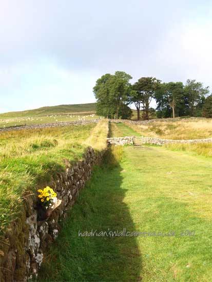 Below Cuddy's Crags and before the climb up onto Hotbanks Crags, the long distance pathway, the Pennine way crosses the line of the Wall.