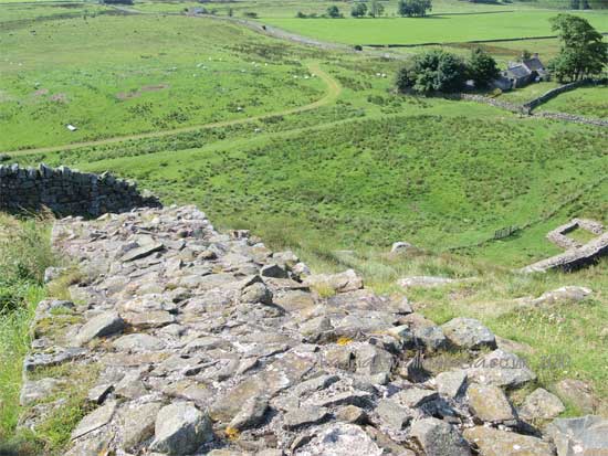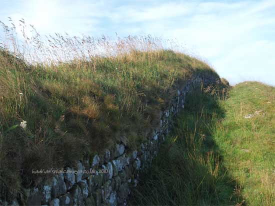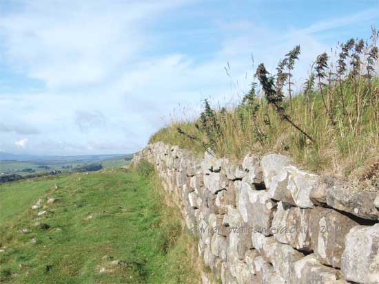 The Wall along from Housesteads to Hotbanks was rebuilt by John Clayton in the 1800's where the Wall was not reconstituted it is now in the form of "drystone"