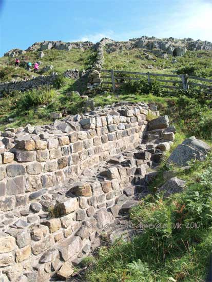 The turret at the foot of Peel Crags is an extra turret thought to have been put there to protect this gap in the Whin Sill.