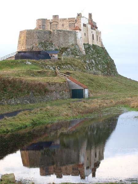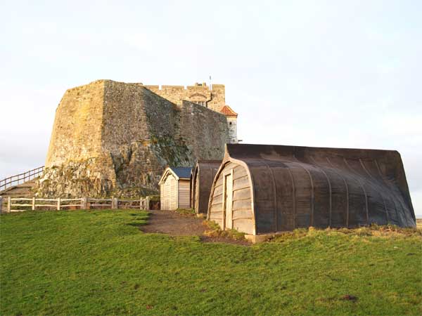 NU 136417/Habitable/Access A Small fort built during the reign of Henry VIII, possibly on the site of an earlier look-out tower. A Map of Holy Island in 1548 shows a beacon on the site of that now occupied by the Castle. The Construction began in 1542 and completed in 1550, probably on the Rocky outcrop to the east of the present Castle. The present site had earth banks which were replaced with stone in 1567 for cannon batteries and was thereafter steadily transformed to provide accommodation for the garrison and built from the stone of the ruined priory around 1570. It has no history of bloodshed. The garrison of the castle was never more than a handful, and apart from the odd epidemic, its duties were militarily uneventful. (The local church records,"Sundry sodgers buryed on one day in 1639"). The nearest it came to battle was in October 1715, when Launcelot Errington and his nephew found all but two of the garrison out for the day and succeeded in ejecting them. For 24 hours they held the castle for the Jacobites and then made an unsuccessful dash for it before the troops returned. Errington and his nephew were imprisoned at Berwick but escaped by burrowing out of Berwick Gaol. In the 17th century Captain Rugg was the governor, he was, according to one account." a notable good fellow, as his great read nose ful of pimples did give tesimony". The site was used as a coastguard station after 1819 following the withdrawal of the guns. The present castle was restored in 1902 as a house by Sir Edward Lutyens and having passed through the ownership of various Bankers was given to the National Trust in 1944. There is a Gertrude Jekyll garden to the noth of the castle included as part of Lutyens design. Holy Island; Beblow Fort; Belbowe Fort; Biblawe Fort; Beblowe |