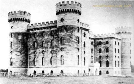 NT 884436/Ruin/Access Medieval tower house incorporated into a ruined C18 folly. The ruins comprise a roofless rectangular building of ashlar and squared stone, 29m by 9.5m, standing two storeys high with two wings on the north side and circular towers at each corner. Internally, there are four vaulted rooms along the south front, all of fine ashlar construction. The wings and towers are part of an incomplete C18 folly, built over 50 years from about 1770 by Sir Francis Blake with the assistance of James Nesbit of Kelso. It is considered to have been an example of Gothic Revivalism. The topographer Raine commented acidly that instead of the old pele tower there now stood "an unseemly mass of unfinished masonry...possesing no one single feature of castellated architecture save for that it is in the shape of a parallogram with wide pointed mullionless windows and a huge disproportionate round bastion at each corner". It originally stood five storeys high and was stone or brick-vaulted throughout as a precaution against fire. At the core of the building is a medieval house with walls about 1.5m thick whose structure is partly revealed in the collapse of the north wall. Several pre-folly features are visible in the north wall and include blocked windows, a chamfered doorway and original north east angle quoins. The castle was first recorded in 1415 as the castle of 'Twysill' held by Sir John Heron, but it was destroyed by the Scots in 1496 and abandoned. A survey made in 1561 notes 'there has been one tower, or pele, which is of ancient time decayed and cast down, and there remains one part or quarter thereof, and a barmkin about it. Also known as, or recorded in historical documents as; Twyzell; Twysill; Twizel; Twisle |